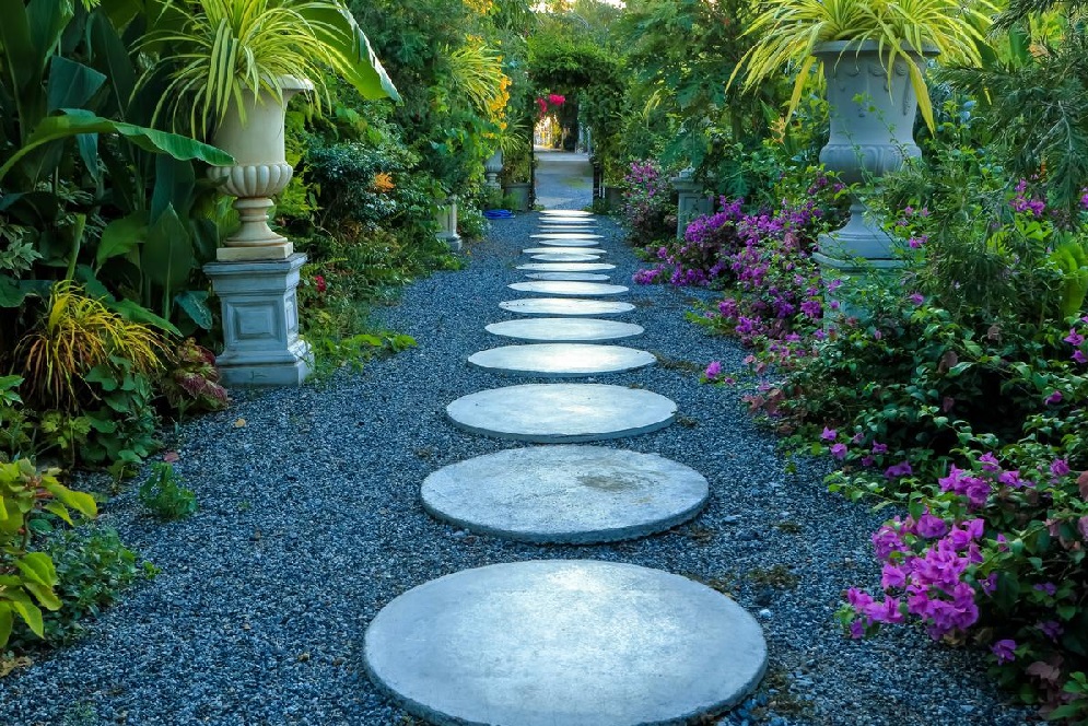 Gravel also comes in a variety of colors, sizes, and types. From lava rock, crushed granite, colored glass gravel, to the more commonly known river rock and pea gravel, there are no shortage of options on the market. You can also keep it simple by selecting a stone path that blends well with the gravel you have chosen or make it stand out by choosing a contrasting color.